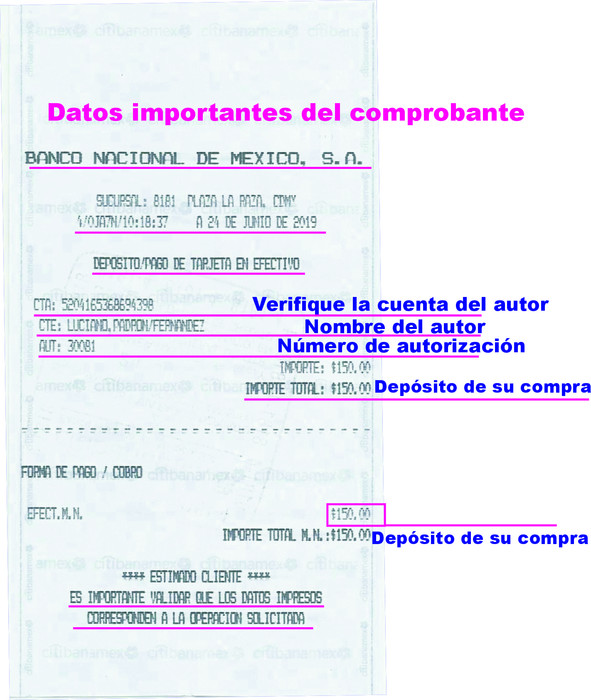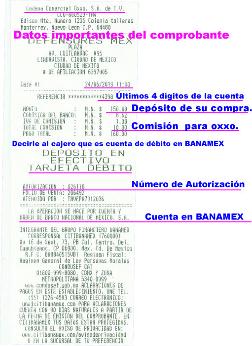 Deposite Mx$49.°° en ventanilla del Banco BANAMEX. No cobra comisión.